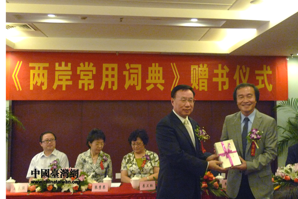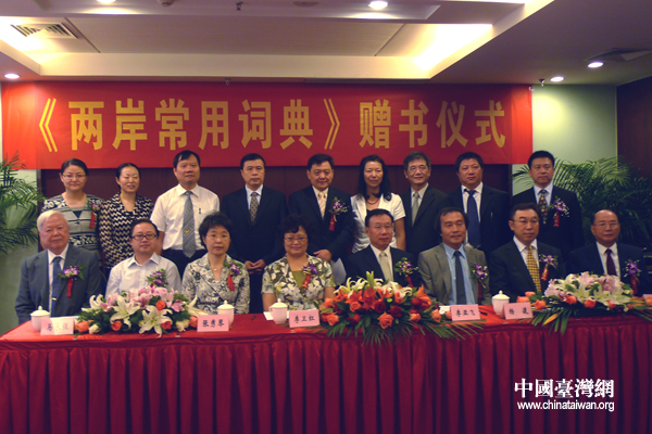 《兩岸常用詞典》贈書儀式4日在京舉行,教育部、中央臺辦、新聞出版總署等部門相關負責人以及參加兩岸合編中華語文工具書的專家學者出席了贈書儀式(中國臺灣網 李徽 攝)