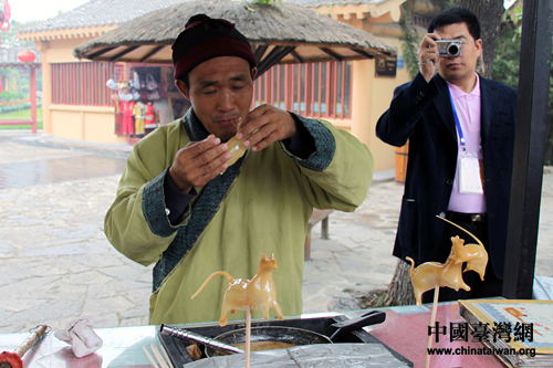 糖人藝術家馬大吹現場展示。(中國臺灣網 董潔 攝)