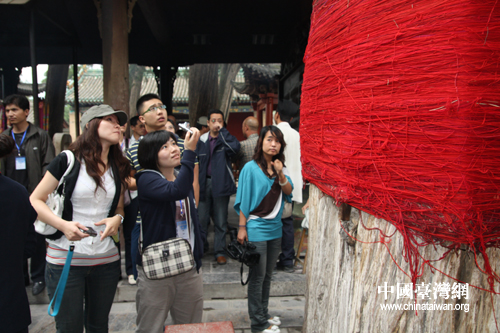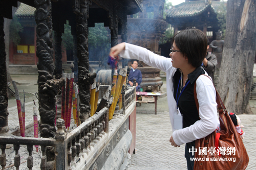 中國臺灣網8月23日運城消息  感受中華道德文化的源頭,體味中華傳統美德的脈絡,22日,臺灣青年團一行來到了位于山西省運城市的舜帝陵和關公廟,祭拜炎黃子孫共同的祖先。