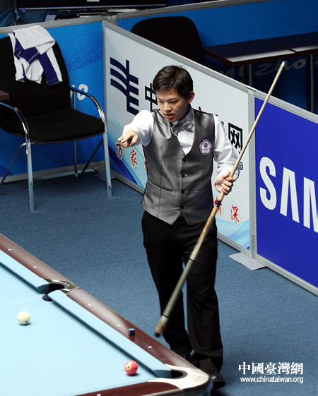 郭柏成瞄準(zhǔn)“黑八”,只要攻入,即贏得比賽。(中國(guó)臺(tái)灣網(wǎng) 鐘寶華 攝)