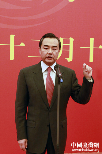 12月16日,紀(jì)念海峽兩岸關(guān)系協(xié)會成立20周年招待酒會在北京人民大會堂舉行。圖為中共中央臺辦、國務(wù)院臺辦主任王毅在招待酒會上致辭。(中國臺灣網(wǎng) 王偉 攝)