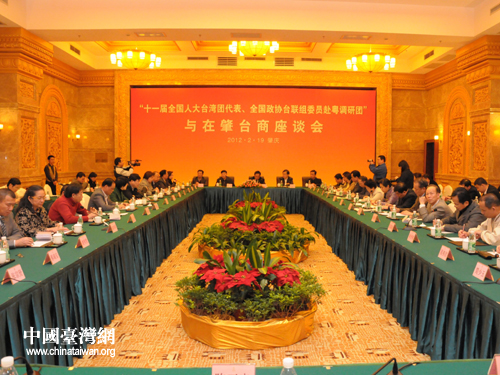 中國臺灣網(wǎng)2月23日肇慶消息 日前,由全國臺聯(lián)會長、全國人大常委會委員、華僑委員會副主任委員、中國僑聯(lián)副主席梁國揚率領(lǐng)的十一屆全國人大臺灣團代表、全國政協(xié)臺聯(lián)界別委員赴粵調(diào)研團一行30多人到達肇慶市,對肇慶的臺資企業(yè)、涉臺工作進行專題調(diào)研。