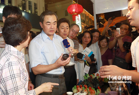 中國臺灣網(wǎng)6月18日廈門消息 中共中央臺辦、國務(wù)院臺辦主任王毅17日晚走進(jìn)廈門市中山路,逛臺灣特色廟會,品原味道地小吃,看文化創(chuàng)意產(chǎn)品,與攤主拉家常話發(fā)展。