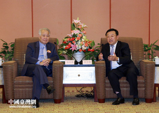 11月5日,上海市副市長唐登杰在上海會見參加兩岸農漁水利合作交流會的親民黨副主席張昭雄。(中國臺灣網 鐘寶華 攝)