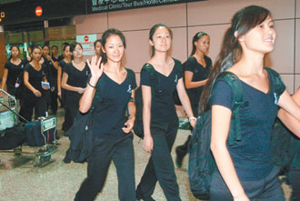 大陸千手觀音表演團飛抵臺灣桃園機場。(圖:臺灣《聯合報》)