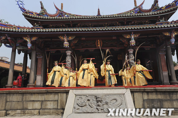 當日,臺北孔廟舉行春季祭孔典禮,2000多名臺灣各地民眾和來自大陸及海外的賓客聚集一堂,共同敬奉中華民族的至圣先師孔子。據介紹,祭孔始于孔子去世后的第二年,最初每年僅秋季一次,至東漢實行春秋兩祭。臺北孔廟除了每年秋季祭孔外,從2008年起推行“春日祭孔 躍動儒風”的釋奠古禮。新華社發(吳景騰 攝)