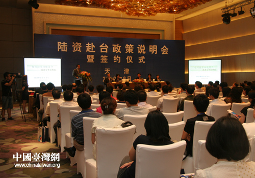 8月5日上午,天津市國有企業、民營企業、中小企業及天津市的臺資企業相關人員共200人參加了“陸資赴臺政策說明會”,聽取了陸資入臺政策的介紹,并就加強津臺企業合作進行了深入交流。說明會期間,天津市工商聯與臺灣工業總會簽署了服務雙方企業的合作備忘錄,一輕集團、王朝酒業集團、力神公司、津酒集團與臺灣工業總會簽署了赴臺投資意向書,天津企業對赴臺發展表現出更加濃厚的興趣。