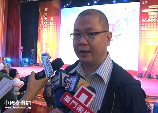 “兩岸大交流—你我共參與”網絡作品大賽7月29日下午在北京啟動。臺灣聯合新聞網事業發展部經理莫家驊在啟動儀式后接受記者采訪。(中國臺灣網 董憲超 攝)