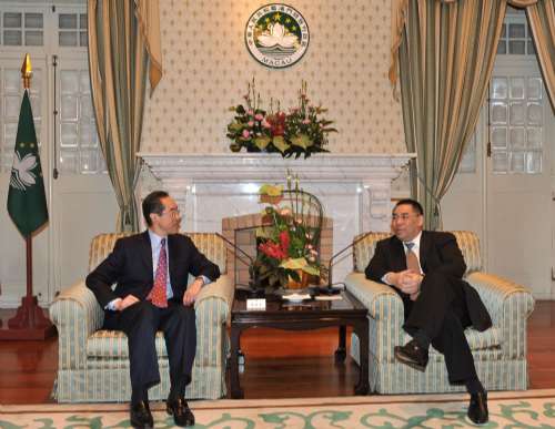 唐英年(左)與崔世安(右)會面后表示,港府將應澳門邀請,積極參與橫琴發展