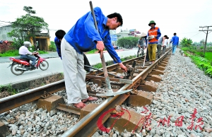 今年4月底,一群越南工人在維修連接河內(nèi)與胡志明市的鐵路路基。