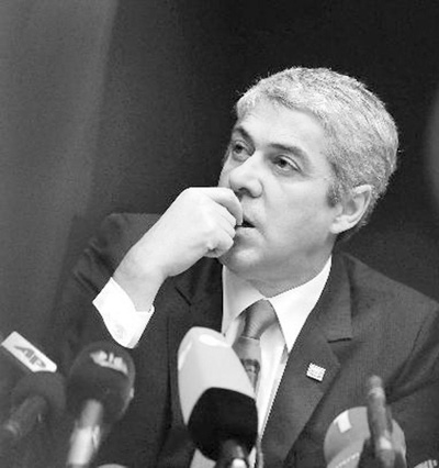 3月25日,在比利時首都布魯塞爾,已經提出辭職的葡萄牙總理蘇格拉底出席歐盟峰會后的記者招待會。新華社記者 武 巍攝