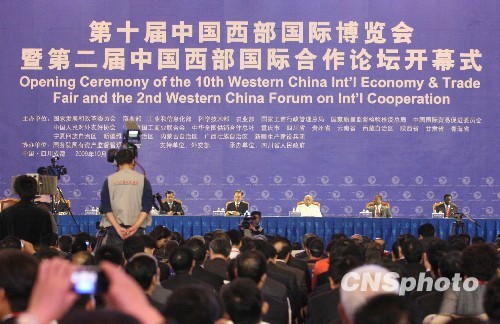第十屆中國西部國際博覽會暨第二屆中國西部國際合作論壇16日上午在成都開幕。國務院總理溫家寶出席開幕式并致辭。他強調(diào),中國將把全面提高西部地區(qū)開發(fā)開放水平放在更加突出的戰(zhàn)略地位,努力把西部地區(qū)建設成為現(xiàn)代產(chǎn)業(yè)發(fā)展的重要集聚區(qū)域、統(tǒng)籌城鄉(xiāng)改革發(fā)展的示范區(qū)域、生態(tài)文明建設的先行區(qū)域,加快構建具有全局和戰(zhàn)略意義的新的經(jīng)濟增長極。