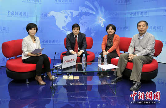 商務部國際貿易經濟合作研究院院長霍建國(左二),商務部國際貿易經濟合作研究院世界經濟貿易研究部主任梁艷芬(左三),商務部國際貿易經濟合作研究院研究員、中國對外貿易研究部副主任李健(右一)做客中新網。