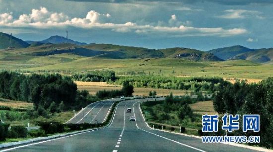資料圖片:圖為寬闊的橫跨內(nèi)蒙古的省際大通道烏蘭浩特市到突泉縣的路段(2010年8月25日)。 新華社記者李欣攝