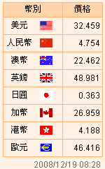 臺幣匯率公告2008.12.19
