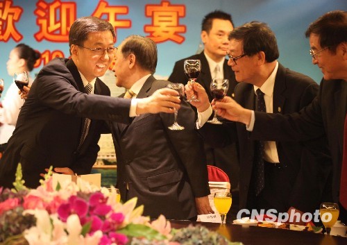 4月6日,剛剛抵達臺灣的上海市長韓正在下榻的臺北晶華酒店,出席上海臺協會、臺北浦東同鄉會、崇明同鄉會的聯合宴請,在臺北與臺商、鄉親見面,鄉音鄉情濃。 中新社發 羅欽文 攝
