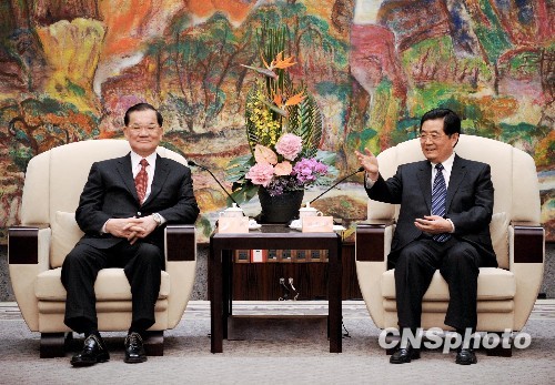 中共中央總書記胡錦濤29日下午在上海西郊賓館會見了中國國民黨榮譽主席連戰、吳伯雄和親民黨主席宋楚瑜等應邀出席上海世博會開幕式的臺灣各界人士。胡錦濤強調,要繼續深化經濟合作,不斷提高兩岸經濟的競爭力。目前,兩岸正在積極商談經濟合作框架協議(ECFA),這有利于兩岸經濟長遠發展。