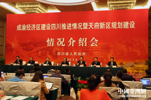 成渝經(jīng)濟區(qū)建設(shè)四川推進情況暨天府新區(qū)規(guī)劃建設(shè)情況介紹會8日下午在北京召開。(中國臺灣網(wǎng) 楊麗 攝)
