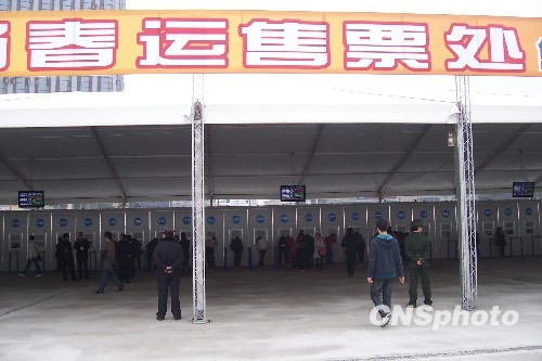 1月20日下午,上海火車站北廣場上一座擁有200個(gè)售票窗口的臨時(shí)“大賣場”正式面向旅客出售2010年春運(yùn)火車票。 中新社發(fā) 周東潮 攝
