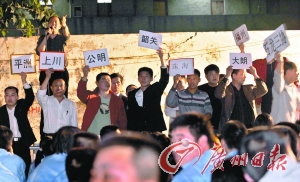 2月23日深夜,深圳平湖一民工集散地,來自各地的企業人事招聘負責人在介紹完本企業情況后,紛紛舉起牌子“搶人”,有應聘意向的民工可選擇到牌子下排隊。