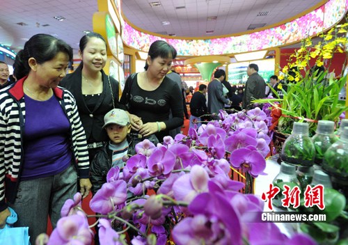 11月18日,第二屆海峽兩岸現(xiàn)代農(nóng)業(yè)博覽會·第十二屆海峽兩岸花卉博覽會在福建漳州東南花都開幕。本屆博覽會以“花開兩岸,合作共贏”為主題,吸引了來自海峽兩岸及海內(nèi)外的1206家企業(yè)參展,其中臺灣企業(yè)有326家。圖為第二屆農(nóng)博會臺灣農(nóng)民創(chuàng)業(yè)園展區(qū)內(nèi)優(yōu)質(zhì)蝴蝶蘭綻放,吸引觀眾眼球。