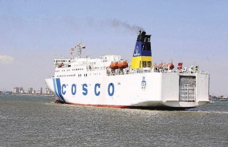 中新社高雄5月10日電 10日上午8時,載著339名旅客的“中遠之星”客滾輪經過約9個小時的航行,從廈門渡海直航靠泊高雄港3號泊位。