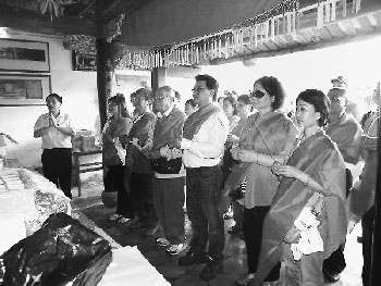 5月29日,臺灣地區(qū)副領導人蕭萬長的叔叔、81歲高齡的蕭火旺帶領54位蕭氏宗親,到南靖縣金山鎮(zhèn)霞涌村“四美堂”認親謁祖。(溫欣 戴俊祥)