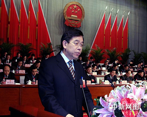 圖為唐山市市長陳國鷹在做政府工作報告。