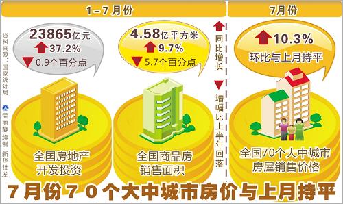 今天上午,國家統(tǒng)計局發(fā)布的全國房地產(chǎn)運行情況顯示:7月份,全國70個大中城市房屋銷售價格同比上漲10.3%,其中,北京市新建住房價格同比上漲20.1%,漲幅居全國之首。環(huán)比上漲0.3%。