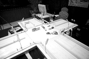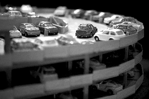 共4層的停車庫內(nèi)停著顏色各異的小汽車。在昨日的建言會上,市民王錫展示了他自制的立體停車庫模型。他認為,“立體方案”可緩解地面停車所導致的擁堵。