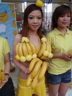 活動現(xiàn)場,美眉穿著“香蕉裝”分送香蕉給民眾,雖然香蕉穿在身上有些重量,但可以幫蕉農(nóng)促銷香蕉也就不覺得辛苦。