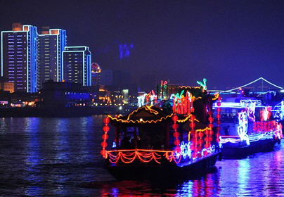 鴨綠江畔焰火彩船助興