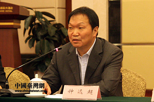2011海峽兩岸記者“錦繡天府川南行”聯(lián)合采訪活動啟動儀式上,四川省臺辦副主任鐘遠(yuǎn)超歡迎兩岸記者的到來,并介紹四川省情及對臺工作情況。(中國臺灣網(wǎng) 馬迪 攝)