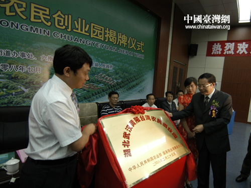 中國臺灣網7月6日武漢消息 作為大陸今年新設的4個國家級的臺灣農民創業園之一,也是中部地區第一家臺灣農民創業園——武漢黃陂臺灣農民創業園,今日舉行了揭牌儀式。儀式上,還進行了項目推介和簽約等活動。