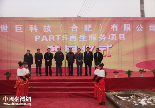 中國臺灣網12月31日廬江消息 日前,臺灣世禾集團—世巨科技(合肥)有限公司PARTS再生服務項目奠基儀式在廬江經濟開發區舉行。臺灣世禾集團總經理陳學哲、深圳市深超科技投資有限公司總經理婁超出席奠基儀式,市臺辦主任徐延安、廬江縣委書記王民生、市招商局副局長梁峰等應邀出席并共同為項目奠基培土。