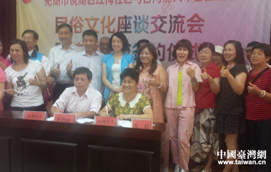參訪期間,雙方就社區(qū)服務管理、文化建設,分別在鏡湖區(qū)汀棠服務中心紅梅社區(qū)、弋江區(qū)澛港街道匯成社區(qū)分別開展了民俗文化交流會,搭建了社區(qū)服務管理、文化建設合作交流平臺。連續(xù)5次當選為里長的蔡正平團長,對我市建設發(fā)展和社區(qū)建設深表嘆服、贊不絕口,感到收獲很大,有不少值得學習借鑒的地方。市臺辦主任鄭鋒連忙接話說,兩岸血脈相連、文化相通,蕪嘉兩地基層民眾要多交流、多溝通,常來常往,增進相互了解、消除心理隔閡,相互借鑒學習、促進共同發(fā)展。(中國臺灣網(wǎng)蕪湖市臺辦通訊員 戴秀武)