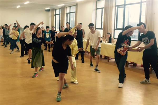 最后一站是在人文與國際教育交流學(xué)院四樓舞蹈教室。獲得全國五禽戲比賽冠軍的安徽中醫(yī)藥大學(xué)四位同學(xué)分別給大家演示了五禽戲、易筋經(jīng)等養(yǎng)生健身功。8月底的合肥暑氣未消,在沒來及安裝空調(diào)的房間里,兩個“冠軍”認真的教,二十幾個師生認真的學(xué)。揮灑的是汗水,綻放的是青春,凝聚的是友誼。