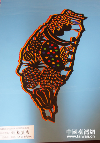 臺灣民俗風情剪紙作品《寶島果香》。(中國臺灣網 郭慶娜 攝)
