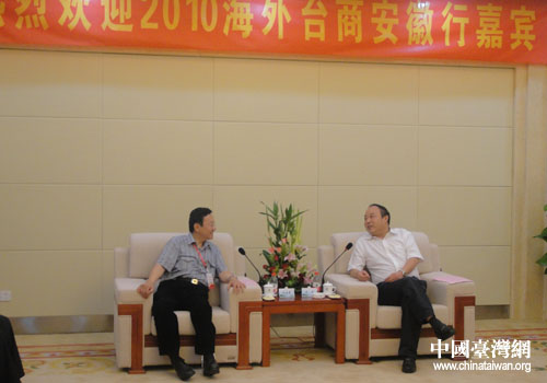 中國臺灣網9月20日阜陽消息 日前,由國務院臺辦和安徽省政府主辦的“2010海外臺商安徽行”活動,分三路赴17地市參觀考察,其中,參訪團的C線團員歐洲臺商會聯合總會創會名譽會長沈為霈、日本京王產業株式會社社長益田浩吉等一行9人在安徽省臺辦調研處處長張向陽的陪同下來到阜陽市考察訪問。