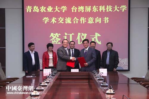 中國臺灣網(wǎng)5月8日青島消息 日前,臺灣屏東科技大學副校長戴昌賢一行來到青島農業(yè)大學參訪交流,兩校簽署了學術交流合作意向書,就合作辦學等事宜達成合作意向。青島農業(yè)大學副校長戴洪義會見了臺灣客人。