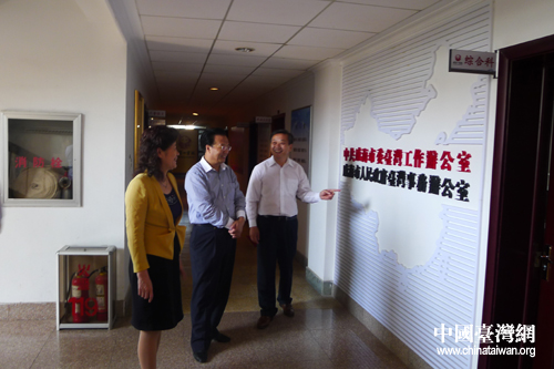 張雪燕一行巡視辦公場所。(圖片來源:威海臺辦)