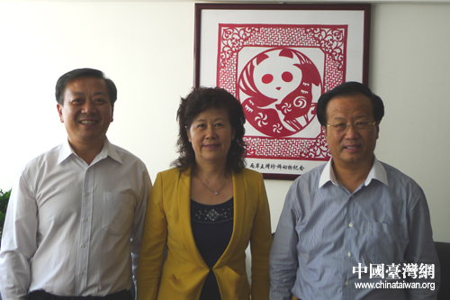 山東省臺辦主任張雪燕(中)、威海市委副書記趙熙殿(右一)和威海市臺辦主任于連波(左一)合影。(圖片來源:威海臺辦)