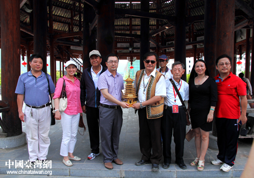 中國臺(tái)灣網(wǎng)8月10日從江消息 為促進(jìn)海峽兩岸的文化交流與合作,進(jìn)一步加深兩岸友誼,應(yīng)全國臺(tái)聯(lián)的邀請(qǐng),臺(tái)灣民意代表孔文吉一行34人專程到貴州參訪。為了讓參訪團(tuán)在從江順利開展民族文化交流活動(dòng),使他們了解從江少數(shù)民族風(fēng)情,加深兩岸民族的兄弟情,參訪團(tuán)一行參觀苗侗風(fēng)情。