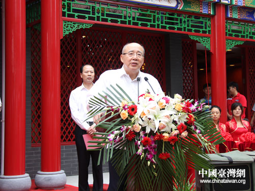 中國國民黨榮譽主席吳伯雄在煙臺臺商會館落成典禮上致辭。圖片來源:煙臺市臺辦