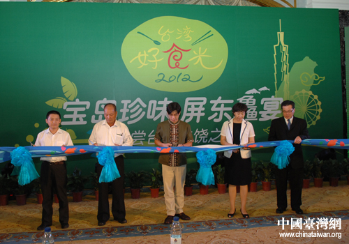 中國臺灣網9月6日北京消息 隨著兩岸交流交往的日益深入,臺灣美食文化逐漸為大陸民眾認識和喜愛。9月5日下午,由臺灣屏東縣副縣長鐘佳濱率領的“屏東縣優良農漁產品大陸市場拓銷參訪團”在北京勵駿酒店舉辦了“2012臺灣好食光——寶島珍味 屏東鱻宴”推介會,將屏東優質農漁產品帶到北京,期望能將“吃魚健康 健康吃魚”的理念傳遞給大陸同胞,為兩岸美食交流助力。