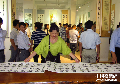 中國臺(tái)灣網(wǎng)9月28日江蘇海安消息 9月27日至30日,曾在兩岸引起強(qiáng)烈反響的首屆“中華情·兩岸緣”臺(tái)商臺(tái)胞書畫展在江蘇省海安縣國家級(jí)“5-23”文化產(chǎn)業(yè)主題公園舉行巡展。這次書畫展由中國華藝廣播公司華廣網(wǎng)、上海市臺(tái)灣同胞投資企業(yè)協(xié)會(huì)和臺(tái)灣中華新世代藝術(shù)文化交流協(xié)會(huì)共同主辦,今年6月底在上海進(jìn)行了首次展出。