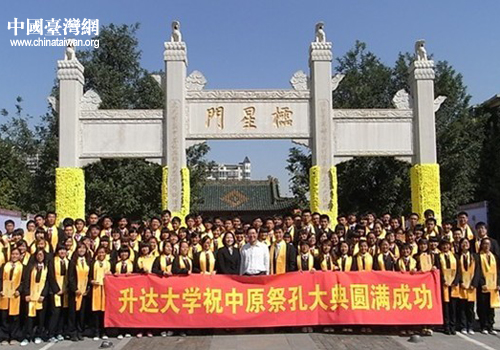 活動中,在鄭臺商祭拜獻(xiàn)禮,升達(dá)學(xué)院百余名師生參加了誦讀《大學(xué)》、《孔子贊》等儒家經(jīng)典,并齊唱《大同文》,向大成至圣先師文宣王孔子行五拜禮。