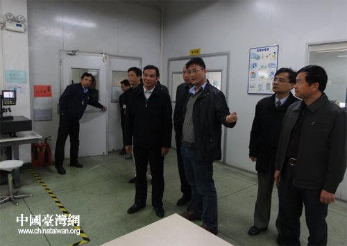 陳國興一行在臺資企業(yè)中山復(fù)盛機(jī)電有限公司調(diào)研,聽取情況介紹。(圖片來源:中山市臺辦)