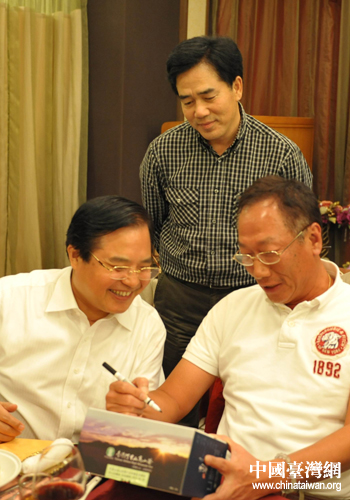雙發(fā)互贈禮物。(圖片來源:青島市臺辦)