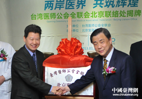 臺灣醫(yī)師公會北京聯(lián)絡(luò)處在北京寶島婦產(chǎn)醫(yī)院揭牌。(北京通訊員 郭寧 攝)